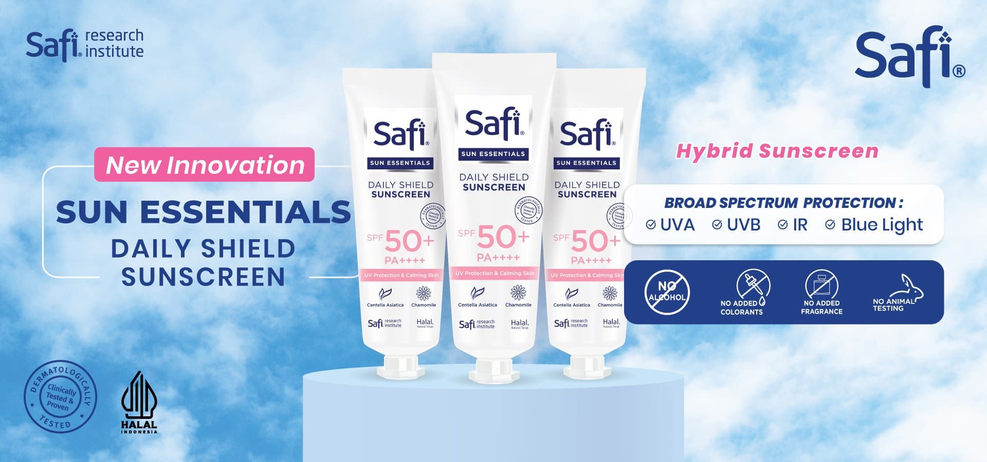 Penting untuk diingat bahwa kalian harus menggunakan tabir surya dengan SPF dan PA yang tepat sesuai dengan kebutuhan dan kondisi kulit kalian untuk perlindungan yang optimal. SAFI Sun Essentials Daily Shield Sunscreen hadir dengan formula Hybrid Sunscreen yang ringan, tidak lengket, dan tidak meninggalkan white cast pada kulit. Dilengkapi dengan SPF 50+ dan PA++++, sunscreen ini memberikan perlindungan optimal terhadap sinar UVA dan UVB.