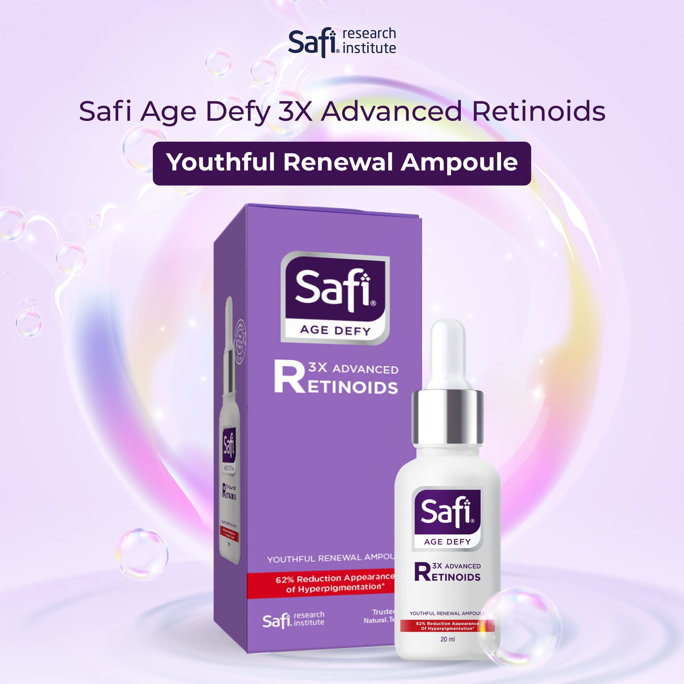 Jika retinol konvensional hanya mengandalkan satu bentuk turunan vitamin A, Safi Age Defy hadir dengan pendekatan yang lebih modern melalui teknologi 3x Advanced Retinoids. Ini adalah generasi terbaru retinoid yang dirancang dengan stabilitas lebih baik, toleransi kulit lebih tinggi, namun tetap memberikan efektivitas optimal dalam merawat tanda-tanda penuaan.